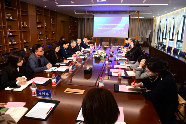 2023 年4 月4 日上午,上海外国语大学贤达经济人文学院校长郑方贤、副校长梁中贤、马艳红、徐征等一行8 人来我院考察交流。校长叶兴国、常务副校长魏小琳、副校长陈文涛、葛金玲以及教务处、科研处、人事处相关领导参加了此次交流活动,会议由常务副校长魏小琳主持。